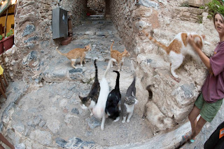 Cats looking for food.